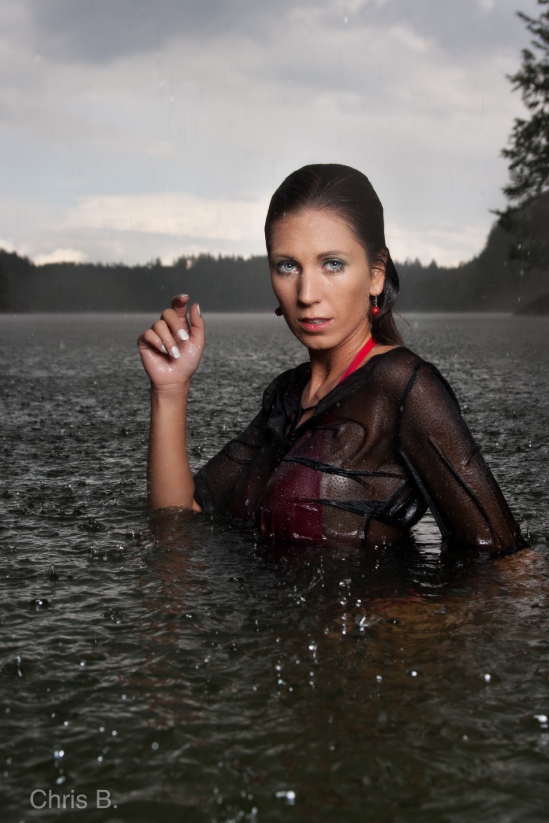 Die hier gezeigten Fotos entstanden, als wir gerade mit unserem Wassershooting beginnen wollten und uns plötzlich ein Wolkenbruch überraschte.